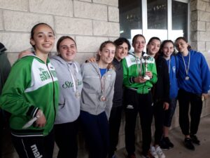 SIRETEANU ELISA 3F (lungo); BIONDI LUCIA 3A (alto); RILLO SERENA 3D (1000m); FEDELI SANTUCCI GINEVRA ID (peso); SANTUCCI ALICE 3G (100m); e ROSSI ELENA 3M (100mHs).